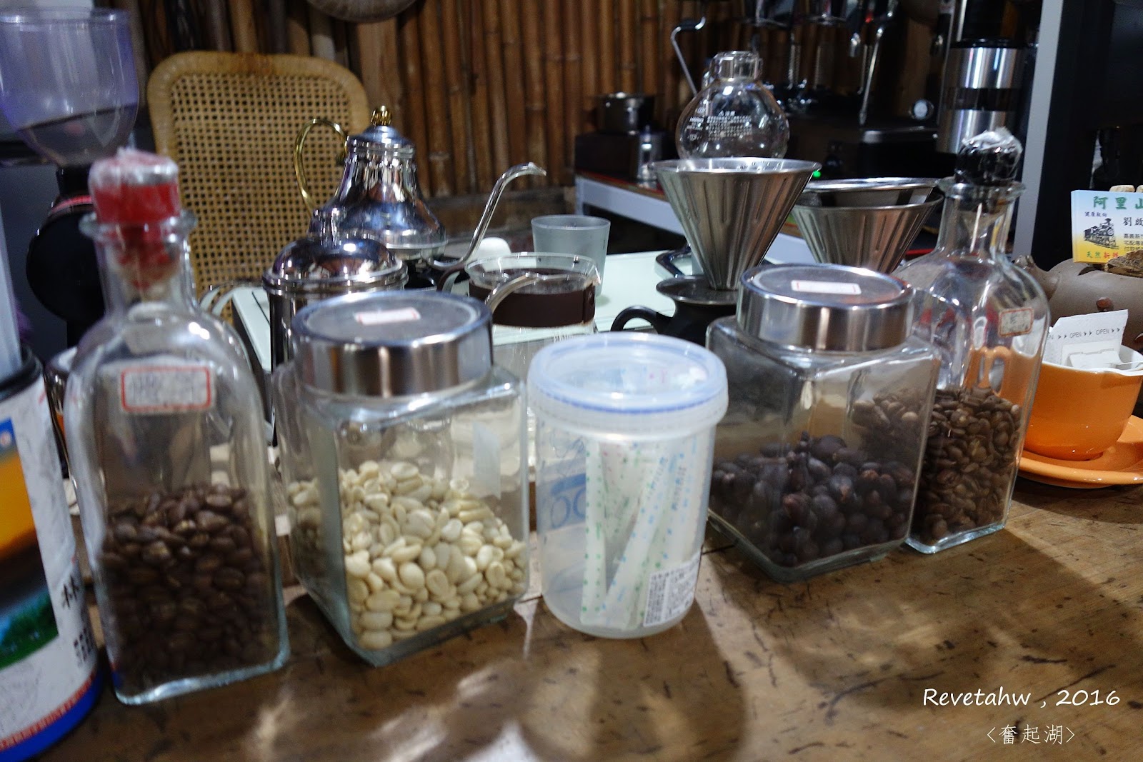 雖然咖啡行銷和裝潢簡單,但咖啡器具可是不簡單,前面的罐子是不同的咖啡,老闆娘有開給我聞,第一名是黑莓咖啡,第二名是優等獎咖啡,不過說實在我忘記有甚麼不一樣了XD