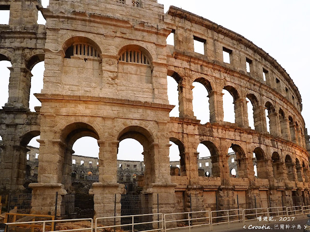 一進城區大大的競技場就在眼前,這是世界僅存的六大競技場,建於西元一世紀,當時的羅馬帝國橫跨幾乎整個南歐,巴爾幹半島又離羅馬很近,是重點發展區域之一,羅馬皇帝沒事就想鬥獸給民眾看,讓民眾忘記政治上的紛爭。